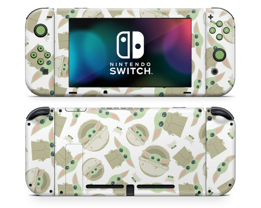 Green Baby Yoda Pattern Nintendo Switch Skin