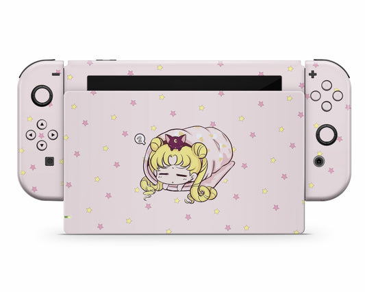 Sailor Moon Sleepy Gamer Girl Nintendo Switch Skin