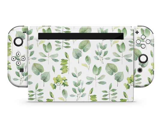 Watercolor Green Leaf Pattern Nintendo Switch Skin