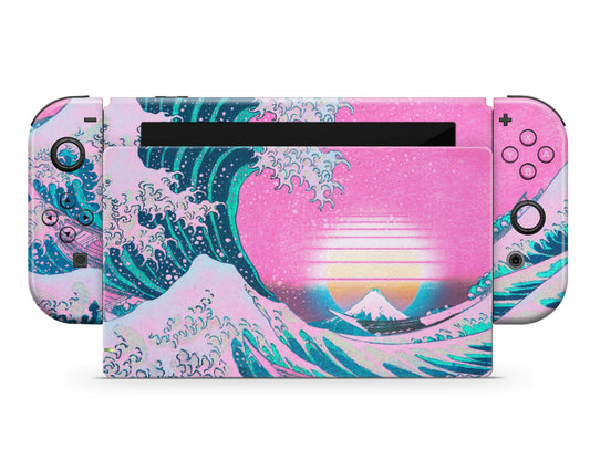Great Wave off Kanagawa Pink Retrowave Nintendo Switch Skin