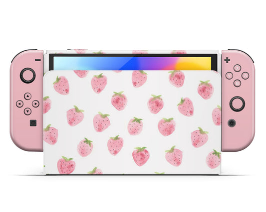 Strawberry Pattern Cute Nintendo Switch OLED Skin