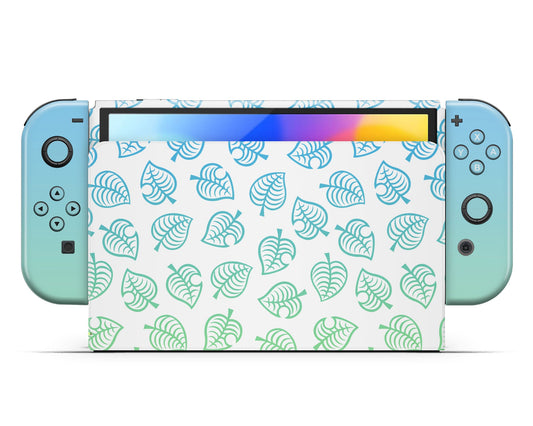 Animal Crossing Green Blue Leaf Gradient Ombre Nintendo Switch OLED Skin
