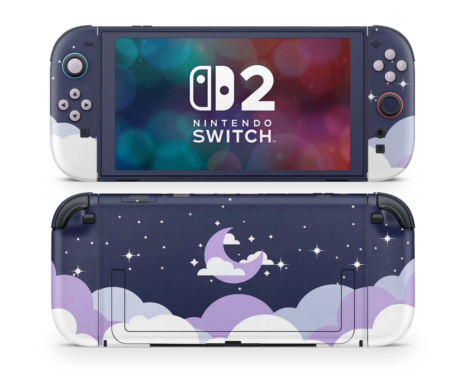 Dark Dreamy Night Clouds Purple Nintendo Switch 2 Skin
