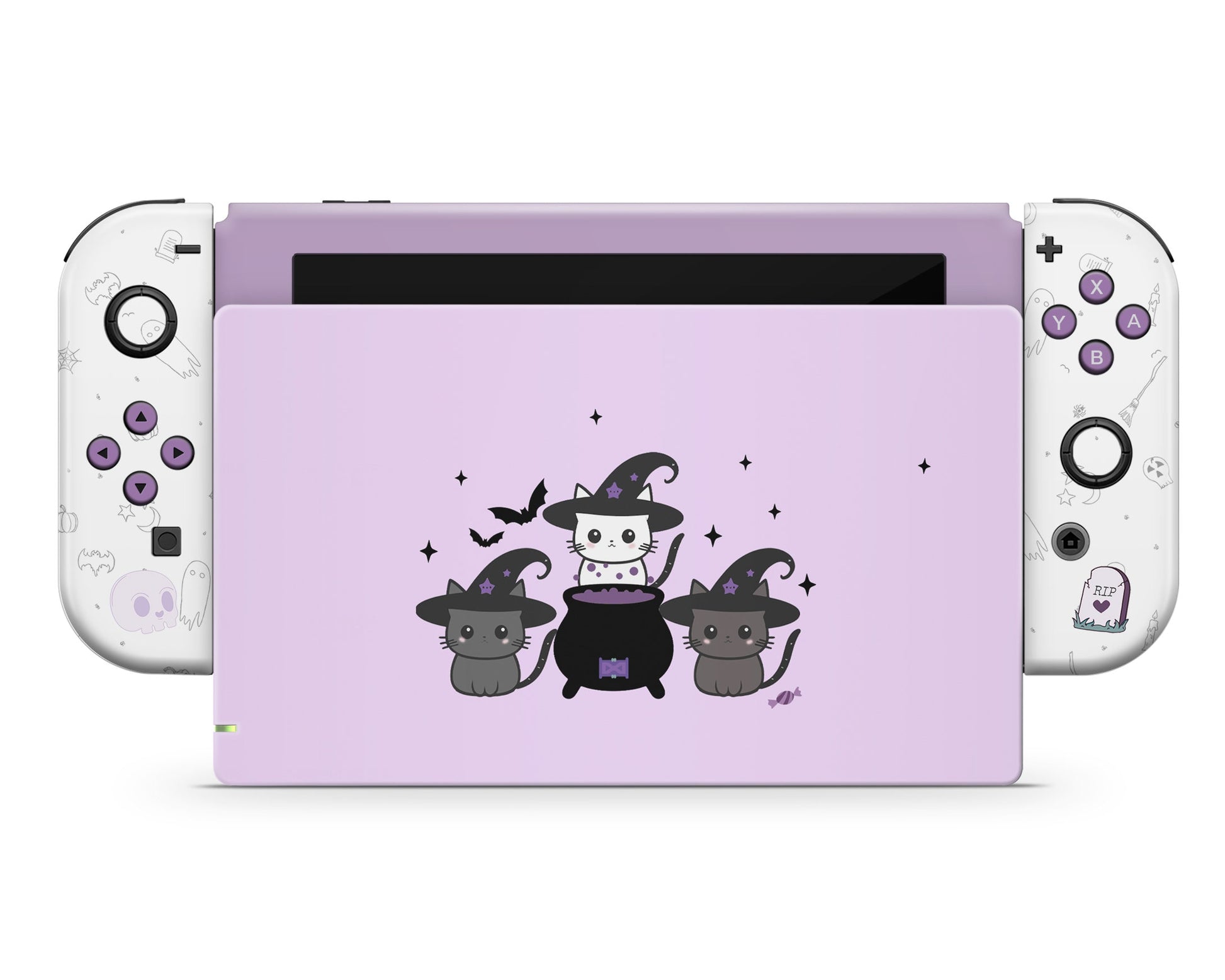 Pastel Purple Witch Cat Nintendo Switch OLED Skin